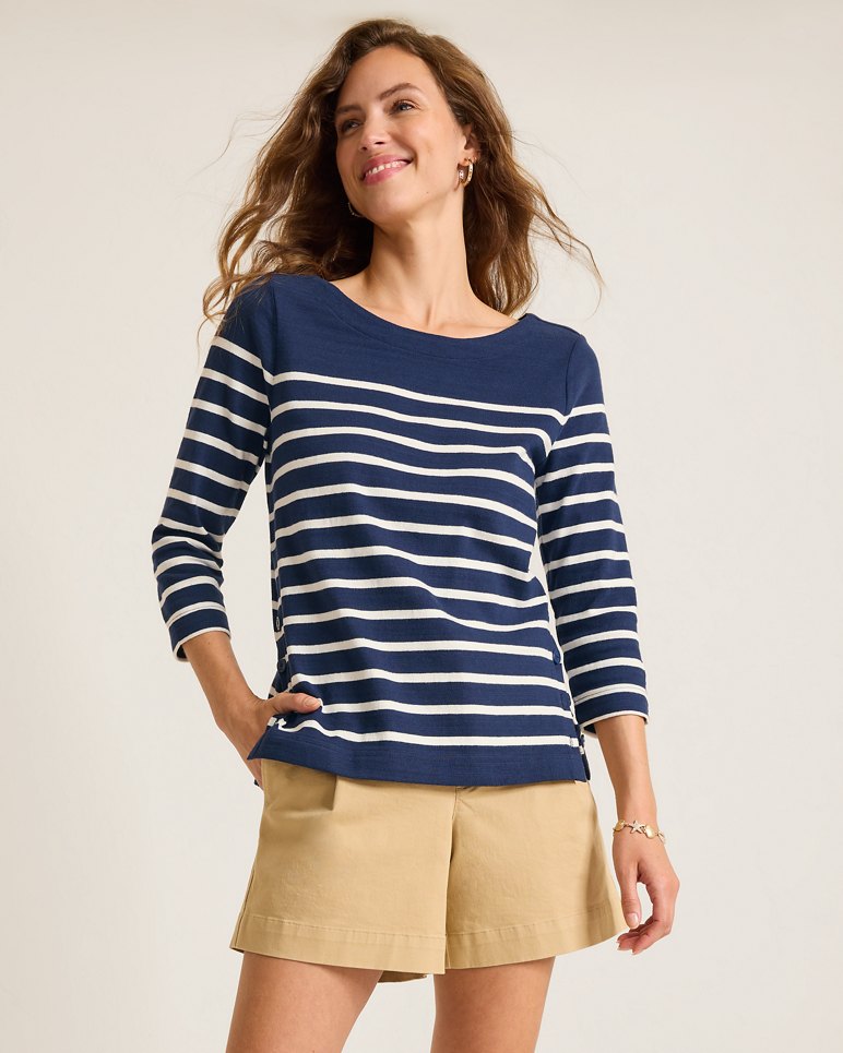 Bahama Bliss Stripe 3/4-Sleeve Top – Coastline