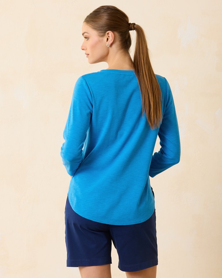 Take it easy in this comfy shirt. Our soft, micro-rib cotton feels amazing against your skin and features a relaxed slubbed texture. The shirttail hem and ¾-length sleeves enhance the laid-back feel. It’s perfect for mornings at home and long days in the countryside.