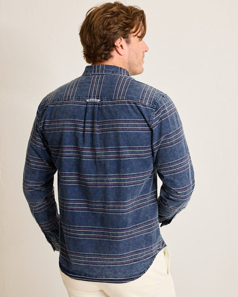 Your casual long sleeve for the everyday just got a bit more sophisticated… This button-down style stands out among the rest with its smart stripe pattern, complete with details like elevated pocketing and woven contrast trim.