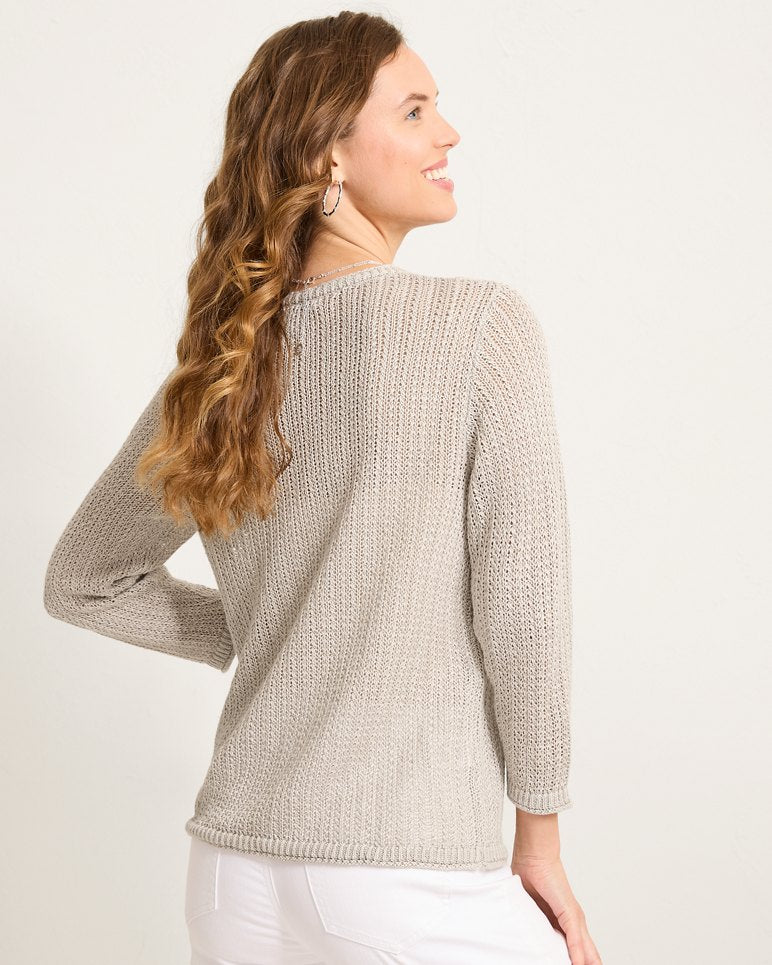 Linen takes on a new shape in this lightweight knit with an easy, flattering drape. Light enough to layer, chic enough to stand alone, this sweater’s rolled hems and airy weave add easy charm to the natural elegance of linen.