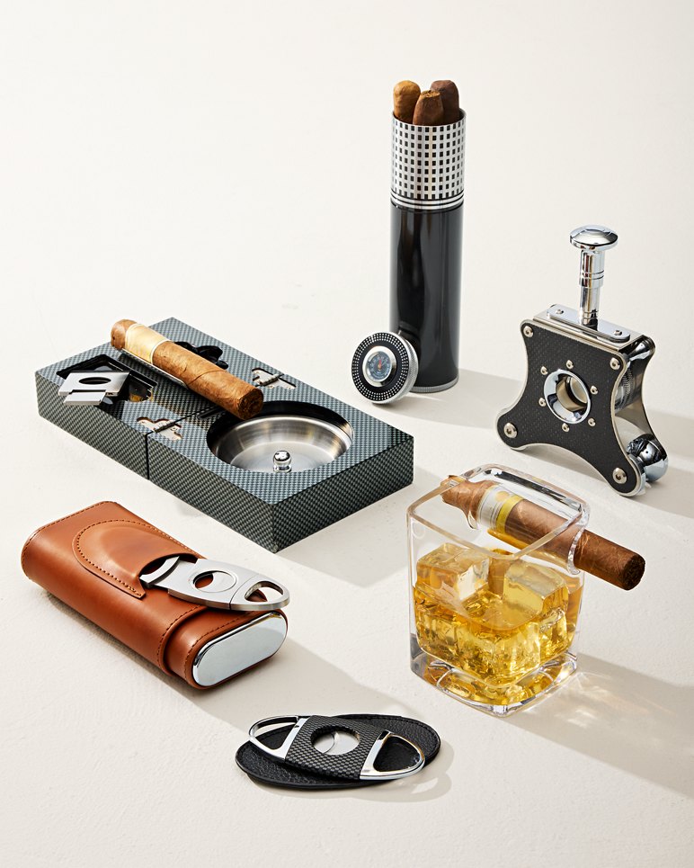 Precisely cut your cigars with this sleekly designed cigar tool that you can effortlessly carry on the go in its elegant leather case.