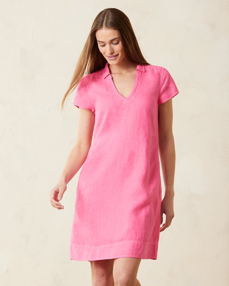 Chic feminine charm with an effortless sensibility takes form in this short-sleeve linen shirt dress, designed with a dainty string tie belt in a season-spanning midi silhouette.