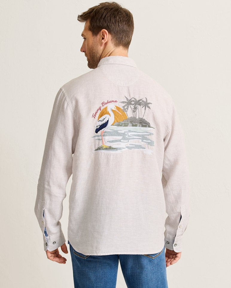Truly elevated island style has never looked quite this special. Crafted from airy linen with an effortless drape, this long-sleeve shirt is defined by its gorgeous and intricate embroidery on the back.