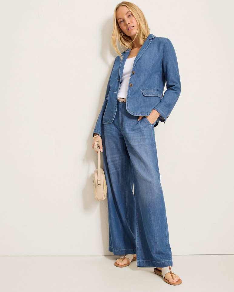A hint of linen adds a note of luxury to this denim blazer, creating a super trendy style that strikes that just-right balance between laid-back ease and sophistication, whether you pair it back to denim or airy linen pants.