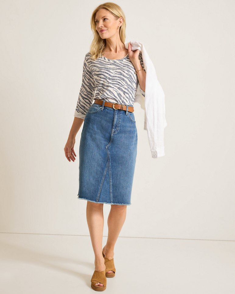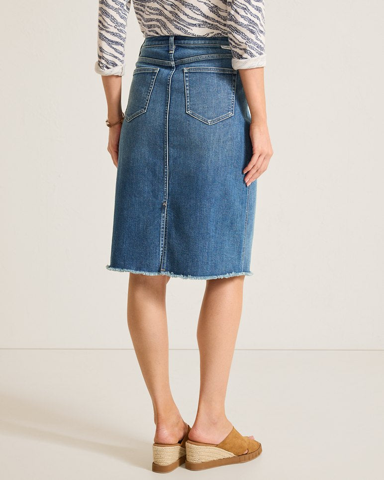 Crafted from our ultra-comfortable airlet denim, the jean skirt you know and love is back in a chic slitted midi silhouette for styling throughout the seasons—and wearing everywhere.