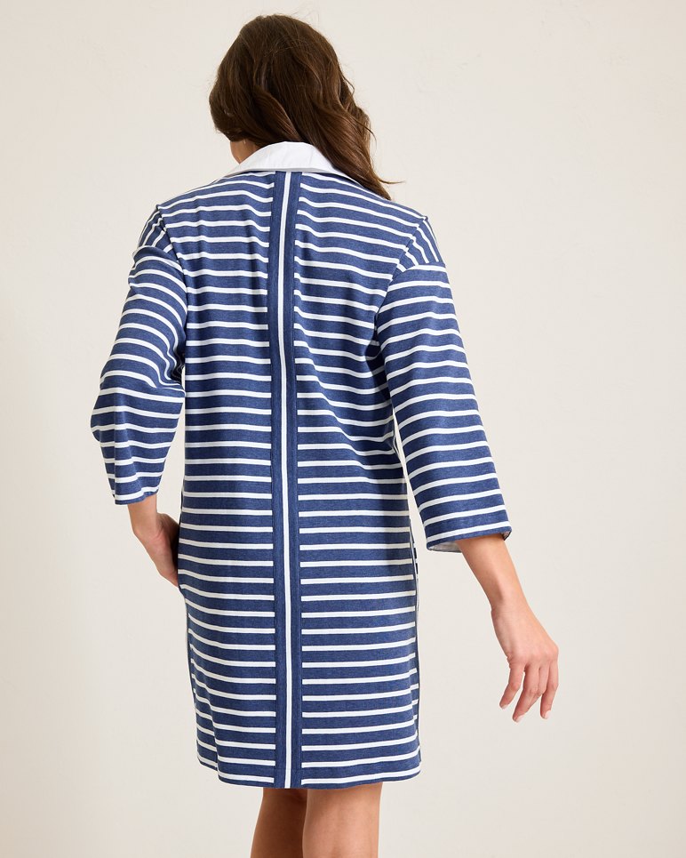 Jovanna Stripe 3/4-Sleeve Dress – Island Navy Heather