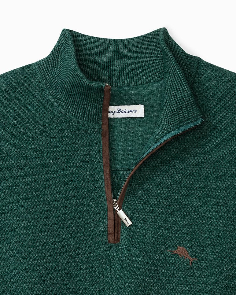 Elevated layering begins here. There’s nothing more luxurious—or relaxed—than this half-zip sweater crafted from a rich blend of cotton, silk, and cashmere that’s detailed with faux suede trim and emblazoned with our iconic Marlin logo.