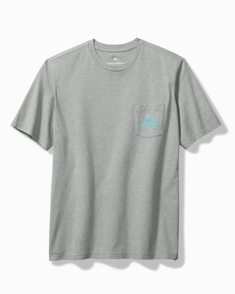 - Short-sleeve t-shirt with screen print graphic on the back and chest pocket.