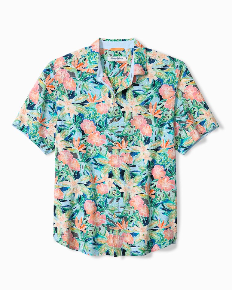 Elevated by a subtle pucker texture and an elegant blue and white stripe pattern, this short-sleeve shirt offers easy-breezy comfort with its cool, lightweight fabric that has just enough stretch.
