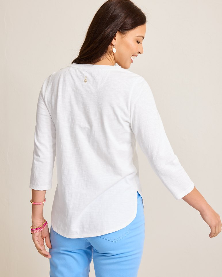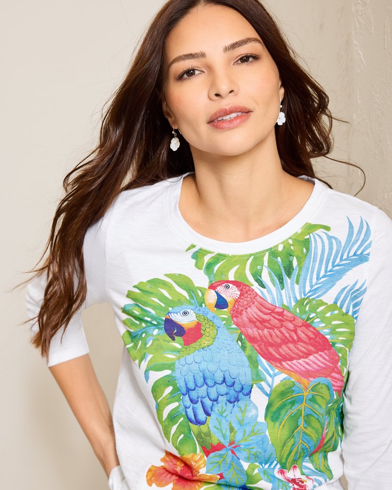 Look no further for the perfect tee to pack for paradise—this colourful style is crafted from exceptionally soft organic cotton and embellished with elevated sequin embroidery throughout.