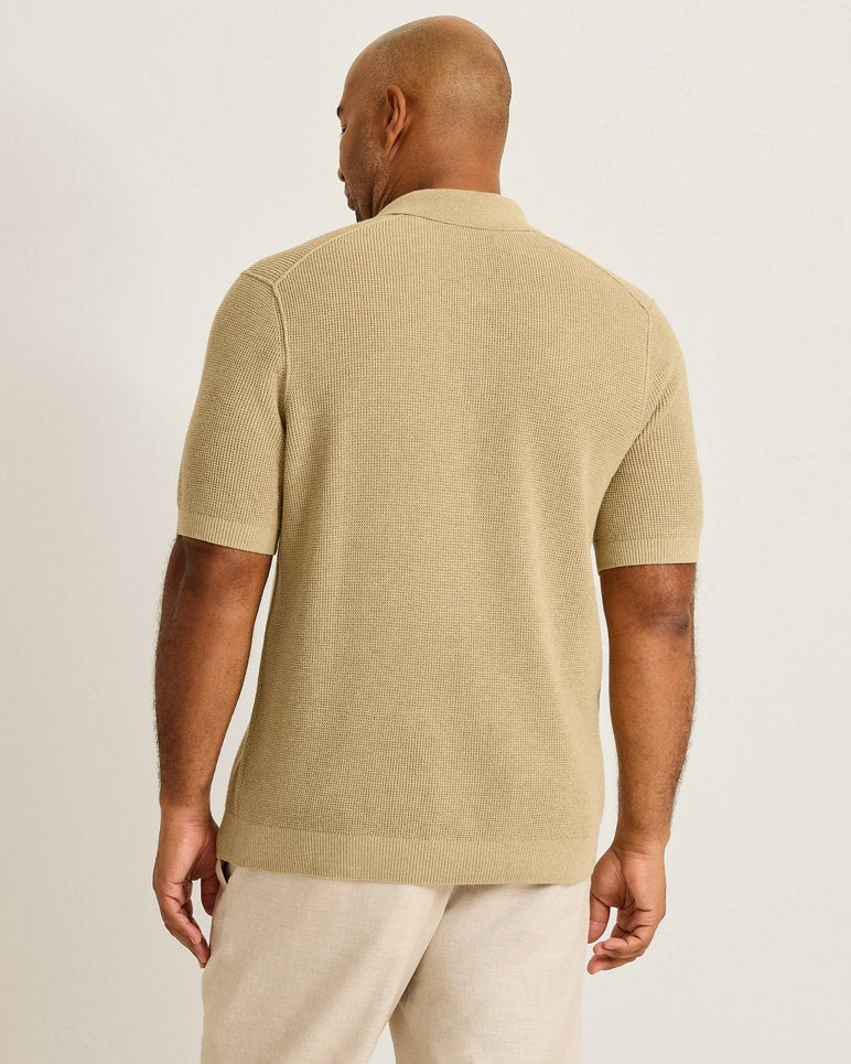 Woven from a soft cotton blend with an easy, relaxed drape, this lightweight knit balances polish and everyday ease to create a timeless sweater polo that looks great paired back to chinos and denim alike.