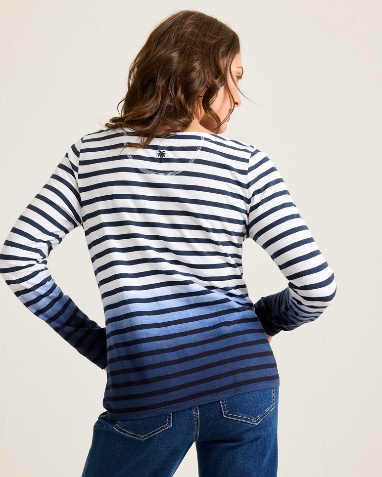 Blending elements of retro appeal with a classic navy stripe pattern inspires a uniquely chic top that makes your everyday looks anything but boring.
