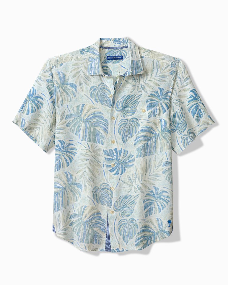 A frond print in an array of blues and greens bring an artistic quality to this airy linen-blend shirt, creating an effortlessly dressed-up look with a cool laid-back vibe.