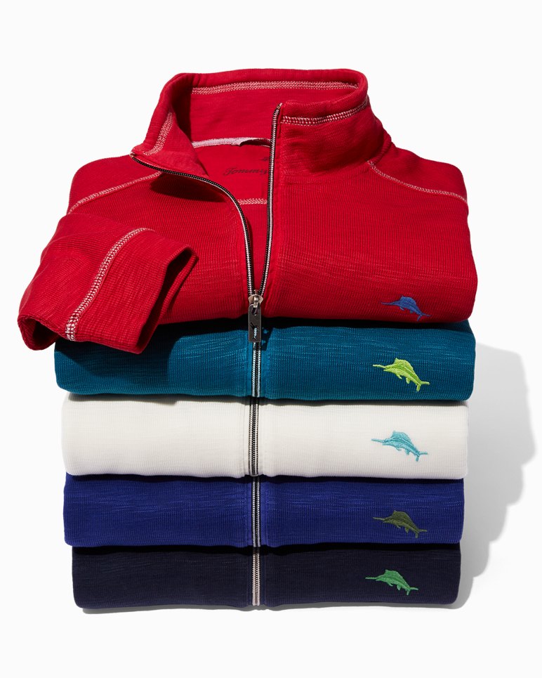 For sunset at the beach or an easy bonfire layer, look to this comfortable half-zip sweatshirt with slubbed texture and a sun-bleached design.